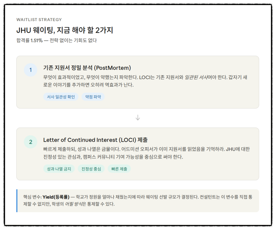 #존스홉킨스웨이팅 #JHU웨이팅전략 #미국대학입시 #웨이팅합격률 #LetterOfContinuedInterest #LOCI작성법 #미국유학컨설팅 #아이비리그입시 #웨이팅리스트전략 #유학컨설턴트